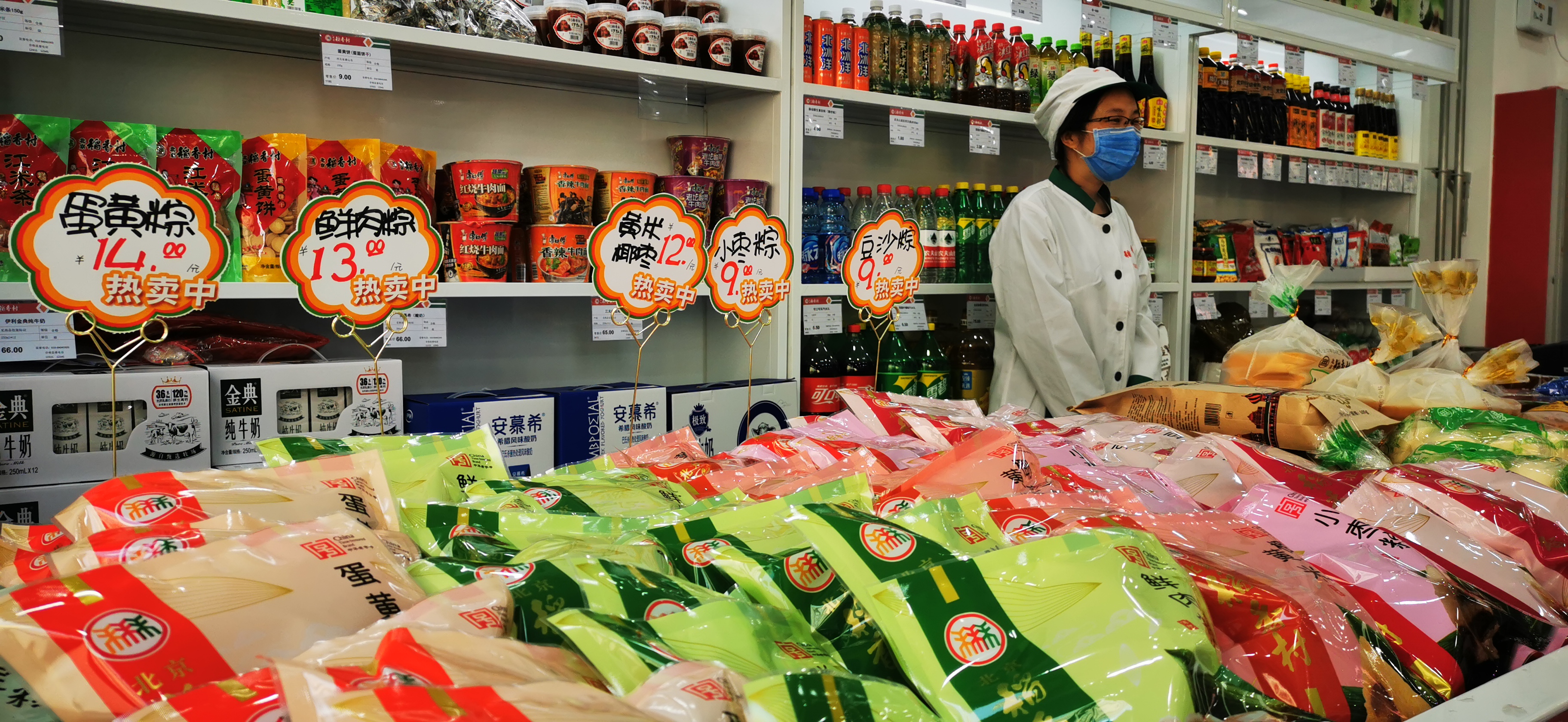 每個(gè)節(jié)日連接一種食物,粽子則是端午節(jié)的標(biāo)志。隨著端午節(jié)的臨近,稻香村公司的店堂里又開(kāi)始了一年一度粽子商品的繁忙售賣(mài)。