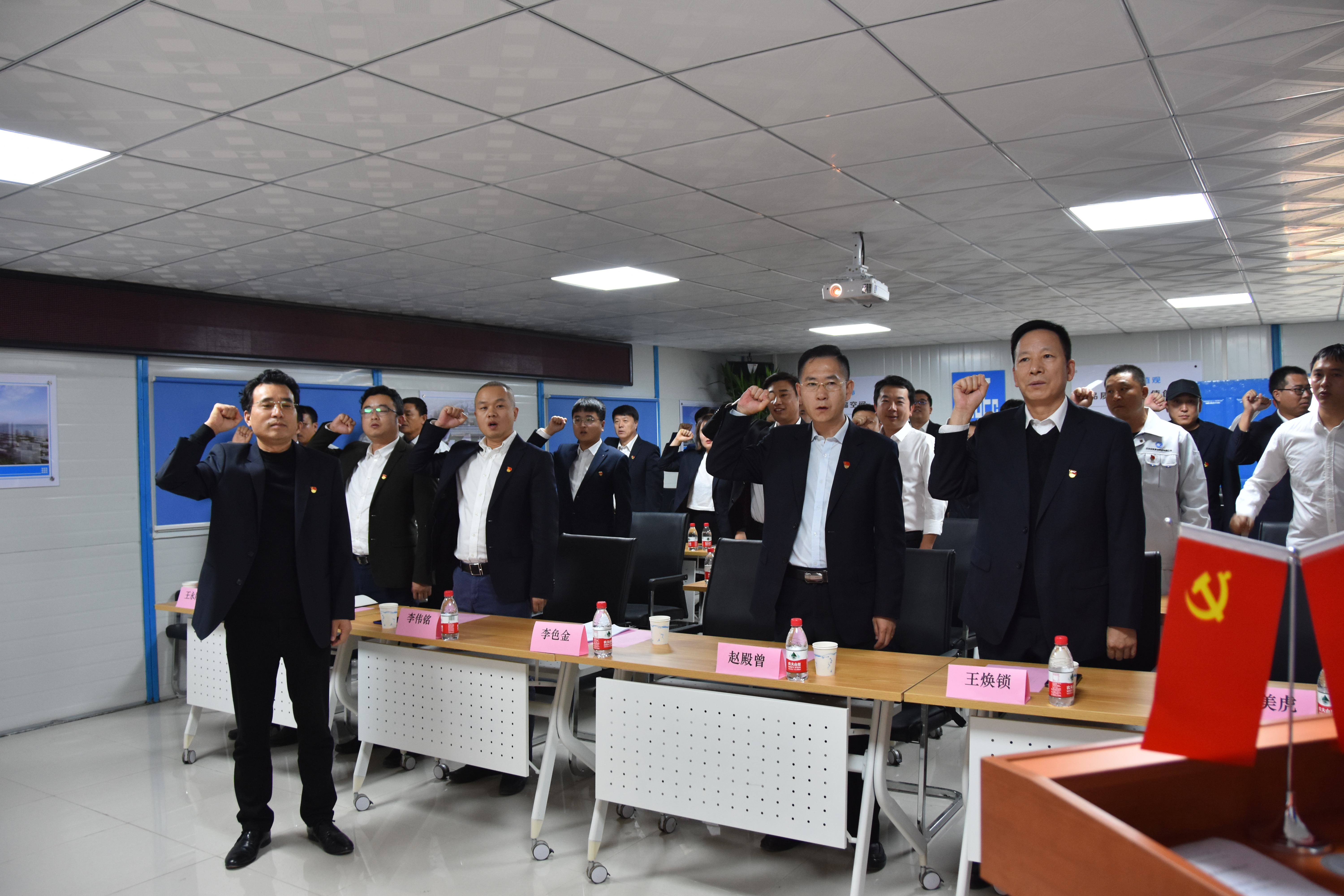 啟動(dòng)儀式后,三個(gè)黨支部還向黨員先鋒隊(duì)、青年突擊隊(duì)共同舉行授旗儀式。全體黨員重溫了入黨誓詞,表示將不忘初心、牢記使命,繼續(xù)發(fā)揮先鋒模范作用,共同助力項(xiàng)目高質(zhì)量發(fā)展。