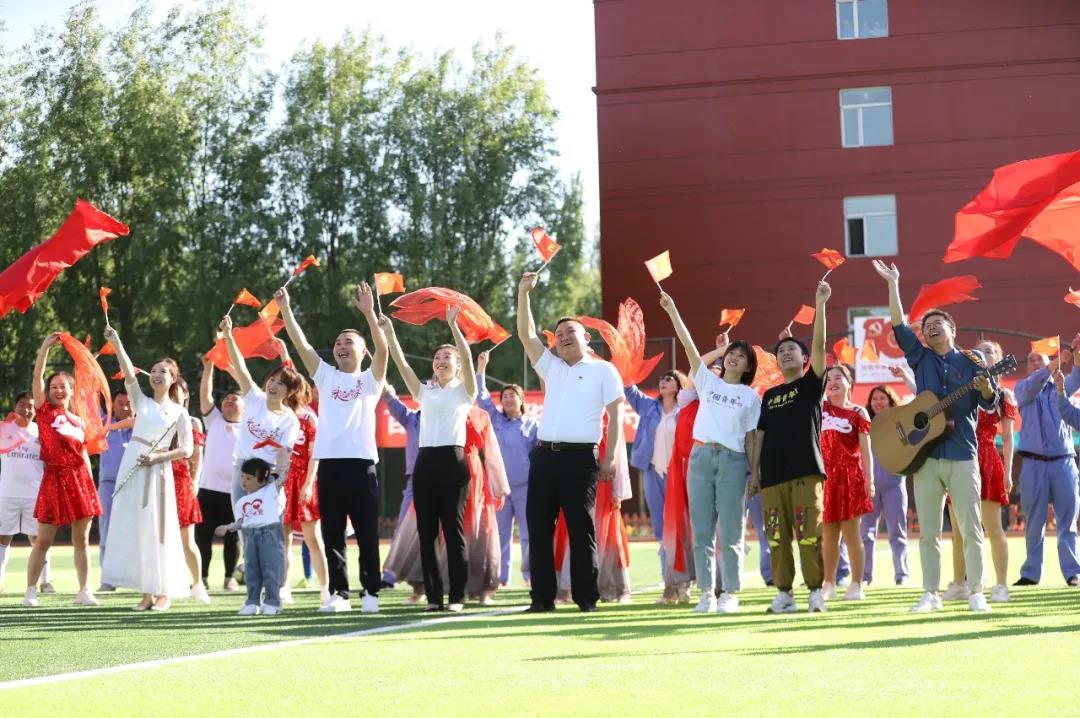 “唱支山歌給黨聽,我把黨來比母親……”上百名職工在足球場唱響《唱支山歌給黨聽》,用充滿激情的歌聲慶祝建黨100周年!歡快的旋律聲中,大家齊聲合唱,踏著節(jié)奏歡快地一起舞動,揮動手中的黨旗,露出真誠的笑容,深情地唱出了心底對黨濃濃的熱愛和滿滿的祝福。