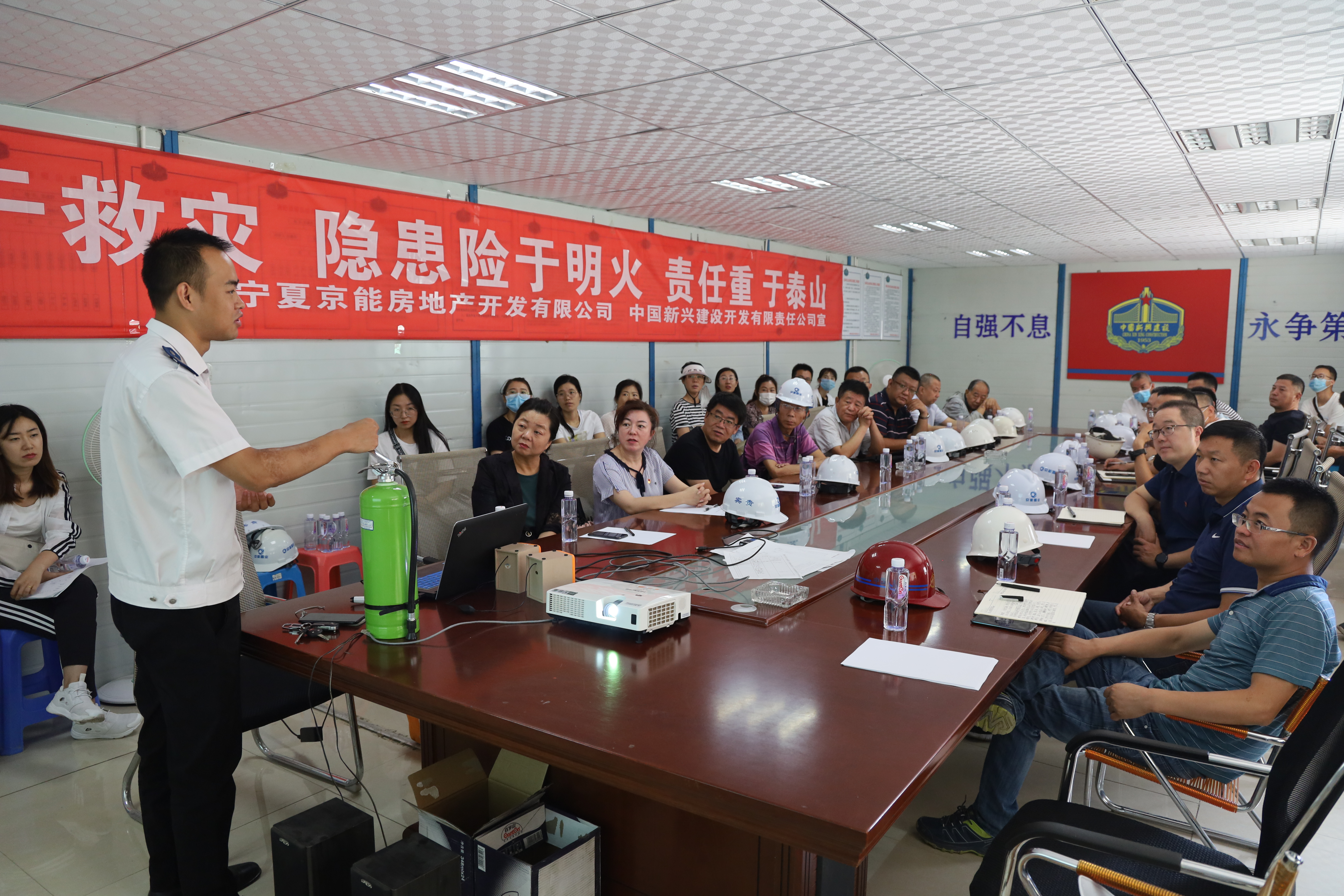 為進(jìn)一步增強(qiáng)消防安全意識(shí),提升應(yīng)急自救能力,筑牢建筑工地消防安全底線,8月10日上午,寧夏京能房地產(chǎn)開(kāi)發(fā)有限公司與銀川市質(zhì)監(jiān)站聯(lián)合開(kāi)展消防安全培訓(xùn)及消防演練活動(dòng)。本次培訓(xùn)特邀安全健康教育網(wǎng)李博教官主講,中國(guó)新興建設(shè)開(kāi)發(fā)責(zé)任有限公司、建研凱勃建設(shè)工程咨詢有限公司等總包、監(jiān)理單位參加了活動(dòng)。